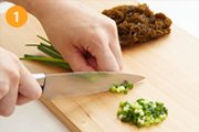 もずくは食べやすい長さに切り、万能ねぎは小口切りにする。