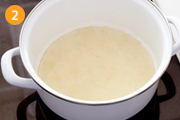 鍋に水、だしの素を入れ、沸騰させる。