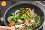 鶏から油が出てきたら、野菜を全て入れて炒める。