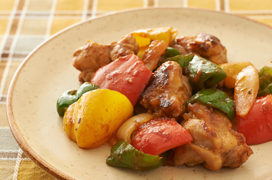 夏野菜と鶏むね肉のガーリック炒め