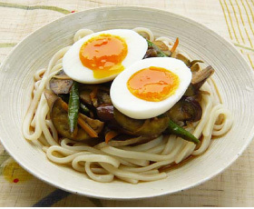 暑い夏においしい冷やしうどんに、旬の夏野菜をたっぷりのせて、より満腹感がありながらカロリーを抑えた夏の新しい提案になります。塩分が気になる方に一度試していただきたい一品です。