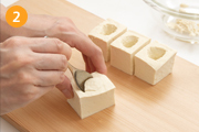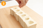 (2)のくり抜いた穴に、片栗粉を少量ふる。