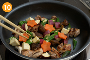 レンコンの食感が失われないよう、レンコンに火を通しすぎないようにしましょう。にんじんは型抜きせず、拍子切りにしてオクラとしいたけと一緒に炒めても手間が省けます。