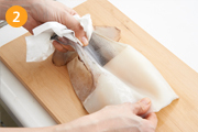 ※ペーパータオルでつかむと滑らずにはぐことができます。
