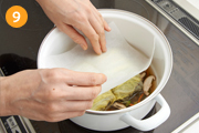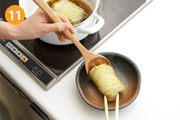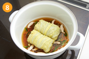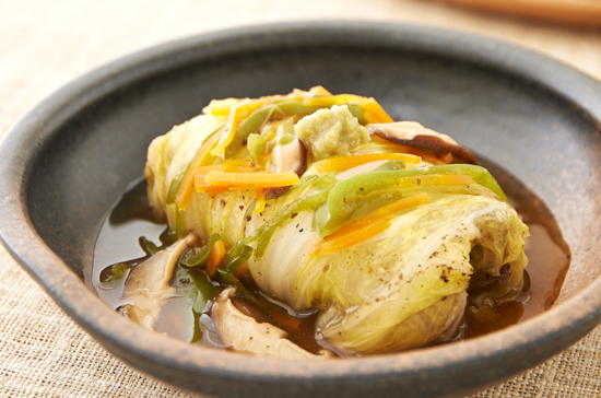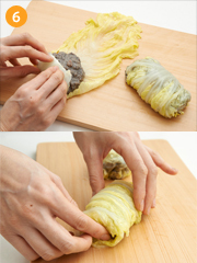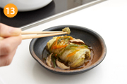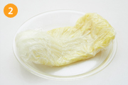 白菜はラップで包み、600Wで5分電子レンジで加熱してラップのままおいて置く。