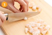 野菜あんには、余っている野菜を加えてもいいです。えびは、粗みじんにすることで食感を楽しめます。柚子こしょう以外にも、わさびやしょうがなどもお好みで。