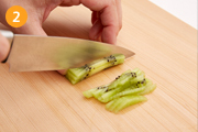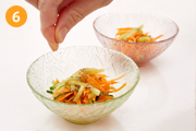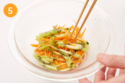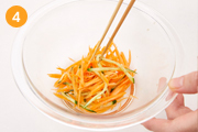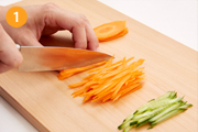 にんじん、きゅうりは斜め切りにしてから、千切りにする。
