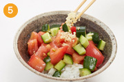 火を使わない、リーズナブルで簡単な丼!食欲のない日でもさっぱりといただけます。暑い季節や時間のない時にオススメ☆