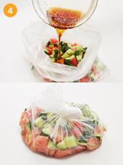 ナイロン袋の代わりに、タッパーでも可。しかし、ナイロン袋の方が調味料がいきわたります。