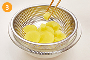 (2)の湯を切り、トッピング用のさつまいもと薄切りにしたさつまいもをわける。