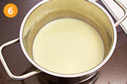(5)を(4)で使った後の鍋に戻して、弱火で加熱する。
