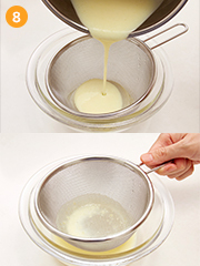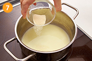 (6)を泡だて器で混ぜながらゼラチンを加える。