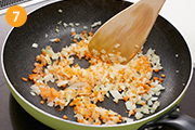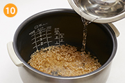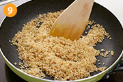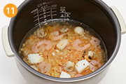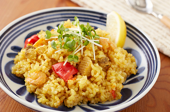 水気を切った玄米に油を吸わせて中火で炒めてから炊くことでプチプチとした玄米の食感を味わえます!シーフードミックスの代わりに、生のエビやイカを使うとさらに見栄えがよくなります☆