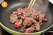 テフロン加工のフライパンに肉を入れてさっと炒める。