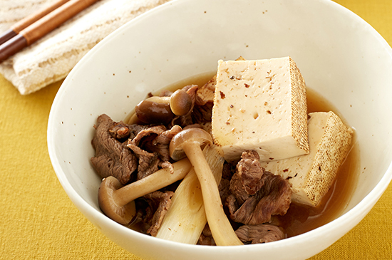 牛肉のコクが豆腐に染みた、すき焼き風の肉豆腐♪しめじもたっぷり入ってボリューム満点のほっこりレシピ!
