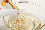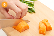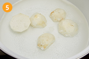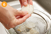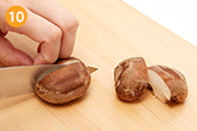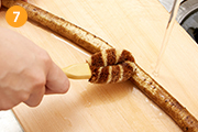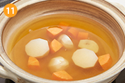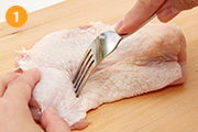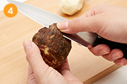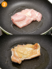 フライパンに油を薄くひき、(1)を皮から十分に焼く。