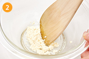 ボウルに豆腐を入れ、フォークか木べらでつぶす。