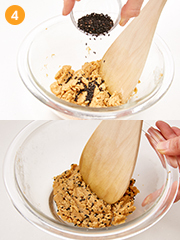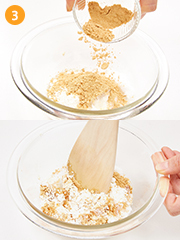 ボウルに小麦粉、きなこ、油、砂糖を加えて混ぜる。