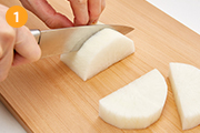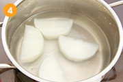 米のとぎ汁(分量外)で大根を下ゆでする。