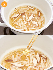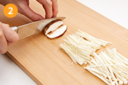 しいたけを薄切りに、えのきは石づきを切り落とし半分に切る。