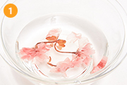 桜の花の塩を洗い流し、水に浸して塩抜きをする(3~5分)。