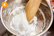 鍋にコーンスターチと砂糖を入れ、しっかりと合わせておく。