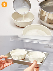 粗熱を取ったら器に入れ、冷蔵庫で冷やす。(40分ほどで固まります。)