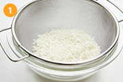 お米をといで、30分ざるにあげておく。