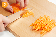にんじんは皮をむき、細切りにする。