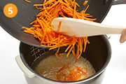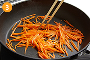 フライパンに油をひき、にんじんをさっと炒める。