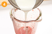 (3)にヨーグルトと甘味料を加え、さらにミキサーにかける。
