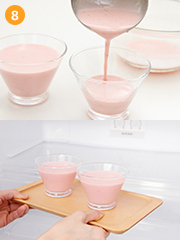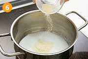 鍋で牛乳を80度くらいまで温め、ゼラチンを加えたらよく溶かす。
