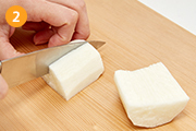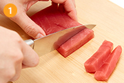まぐろが柵の場合は、食べやすい大きさに切る。