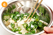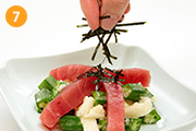 ⑥を器に盛り、まぐろとのりを上にのせたら完成。