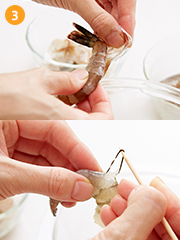海老は殻をむいておく。