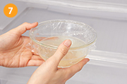 (6)が固まるまで冷蔵庫に入れて冷やす。