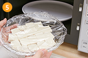 (4)を耐熱皿に並べ、ふんわりとラップをしたら、500Wのレンジで30秒加熱する。