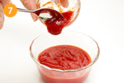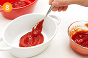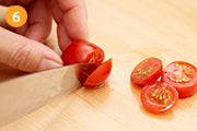 ミニトマトのヘタをとり、3~4等分の輪切りにする。