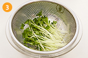 かいわれ大根は根元を切って水洗いし、ザルにあげておく。