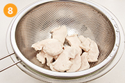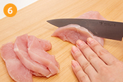 鶏肉を厚さ1cm弱(一口大)のそぎ切りにする。