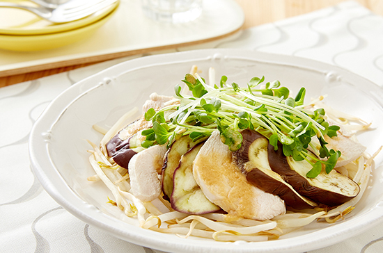 レンジと鍋で簡単に作れる野菜たっぷり棒棒鶏風サラダ。カロリー控えめなのにボリュームたっぷりのうれしい1品!ごまの香りが食欲をかきたてます