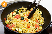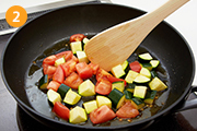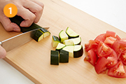 トマトは角切り、ズッキーニはいちょう切りにする。