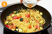 めんつゆを回しかけ、塩コショウで味を調えたら完成。