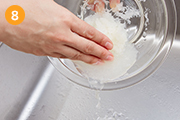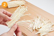 えのきは石づきを切り落とし、手でほぐす。
