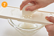 大根の皮をむき、おろし金でおろす。