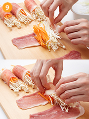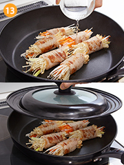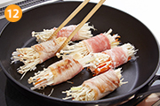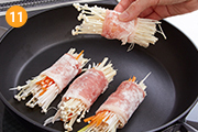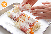 野菜は火が通るとかさが減るので、きつめに巻くのがポイント!フライパンはテフロン加工を使用しましょう。