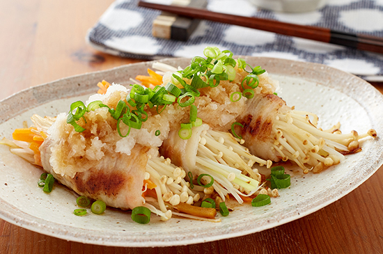 たっぷり肉巻き野菜のおろし添え