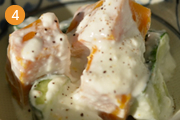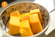 βカロテンが豊富なホクホクかぼちゃとシャキシャキ食感が特徴のきゅうりをヨーグルトとレモン果汁で和えるだけ!ヨーグルトとレモン果汁の酸味がかぼちゃの甘味とマッチした塩分0gのサラダ!