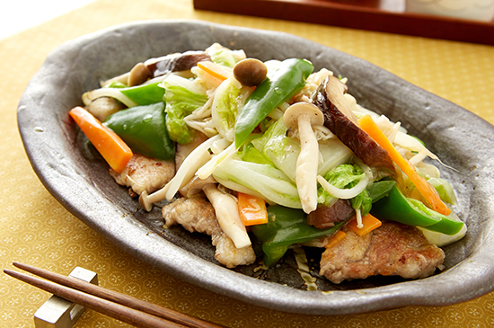 野菜をとにかくたっぷり摂れる1品!漬け込んだ豚肉に干し椎茸の戻し汁がしっかりと効いて美味しい大満足!