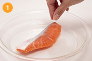 鮭に塩をふる。